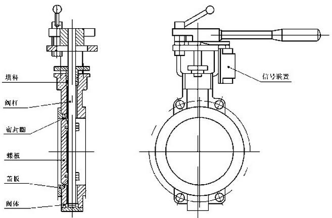 蝶閥根據連接形式的不同能分成法蘭式蝶閥和對夾式蝶閥;按照結構形式可以分為中線蝶閥和偏心蝶閥。蝶閥的結構非常的簡單,有閥體、閥桿、閥座、蝶板和傳動機構組成,常見的傳動方式有手柄、渦輪、氣動、電動。下面我們來針對蝶閥的結構圖來對蝶閥做一個解析。