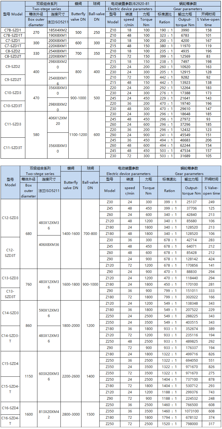 該系列是直齒輪箱與蝸輪箱對接成為蝸輪減速增壓機構,配上電裝組合成為三級傳動,實現了智能自動化,提高了工作,機械總效率,使用小電裝開大閥門,節省了使用成本。