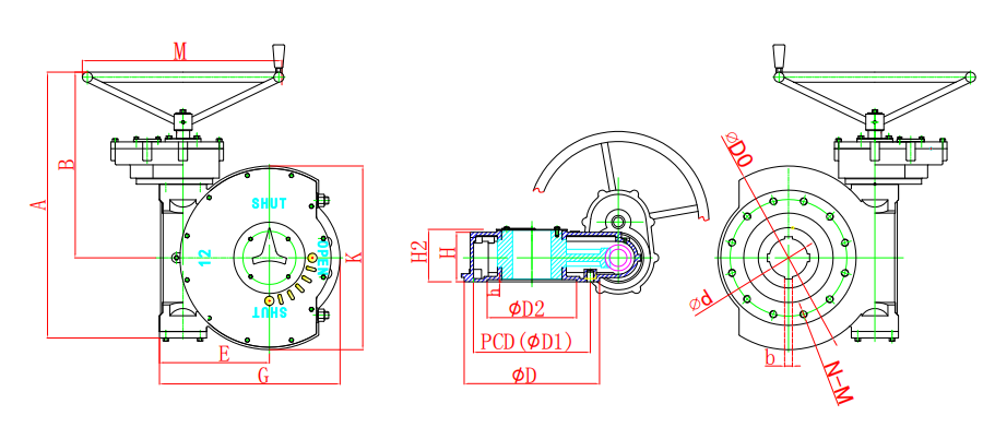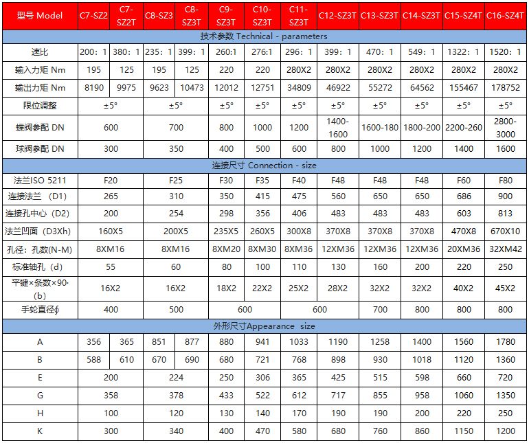 該系列是直齒輪箱與蝸輪箱對接組合成為二級傳動蝸輪減速增壓機構,提高了機械總效率,輸入小力矩,開動大閥門,使操作人員省力,每種型號提供多個傳動比,能更好的匹配不同規格的閥門。